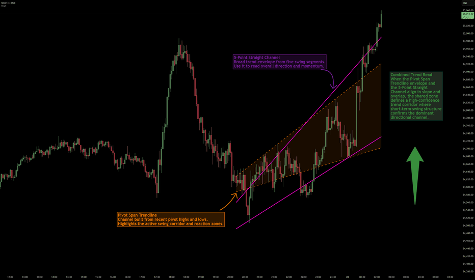 Trend Line Methods (TLM) is a visual study designed to help traders explore trend structure using two complementary, auto-drawn trend channels. The script focuses on how price interacts with rising or falling boundaries over time. It does not generate trade sign