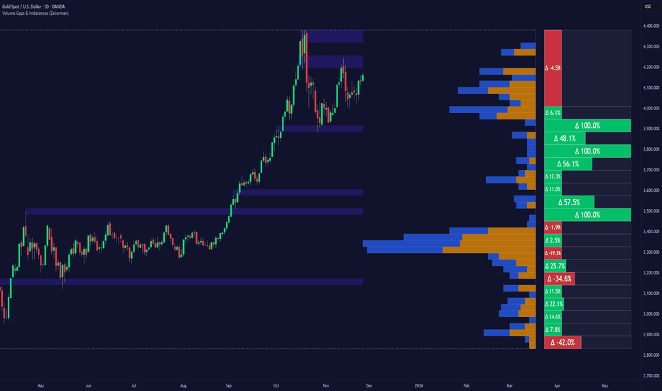 Volume Gaps & Imbalances (Zeiierman) is an advanced market-structure and order-flow visualizer that maps where the market traded, where it did not, and how buyer-vs-seller pressure accumulated across the entire price range.