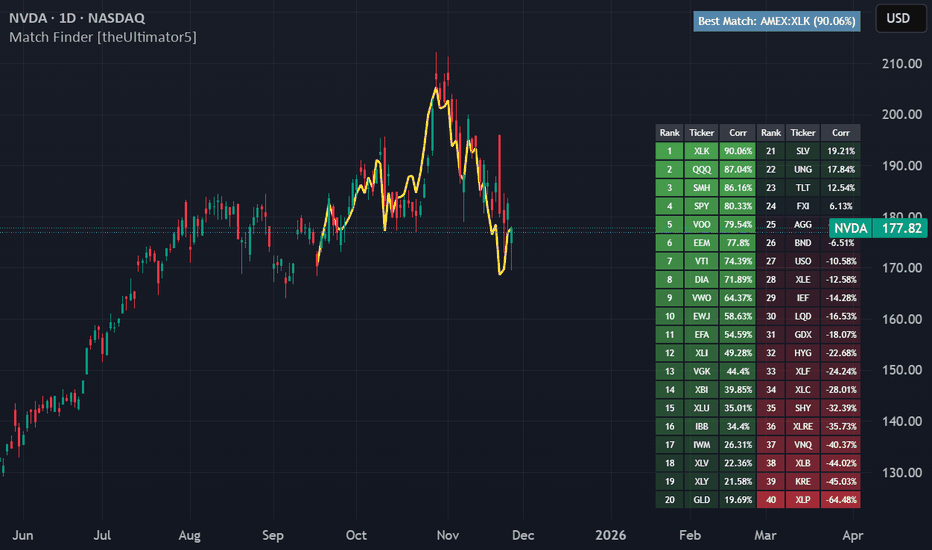 Match Finder [theUltimator5]Match Finder is the dating app of indicators. It takes your current ticker and finds the most compatible match over a recent time period. The match may not be Mr. right, but it is Mr. right now. It doesn't forecast future connection, but it tells you current compatibility for today.